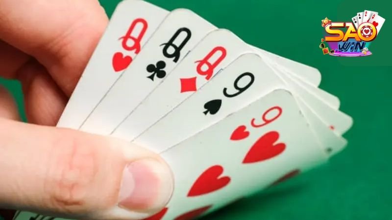 - Bộ ba (Three of a Kind): 3 quân đồng hạng + 2 lá khác nhau.