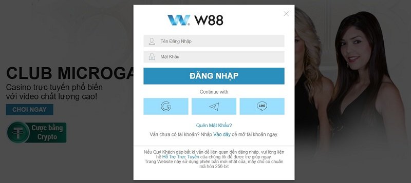 - Đăng nhập vào tài khoản W88 trên website hoặc ứng dụng di động.